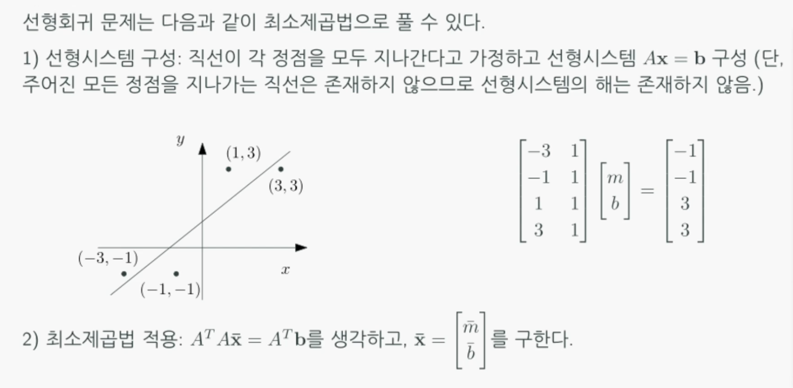 선형시스템 $Ax = b$에 대한 해가 없음에도 불구하고, 우리가 할 수 있는 최선이 무엇인지 알고 싶을 때 사용하는 방법입니다.