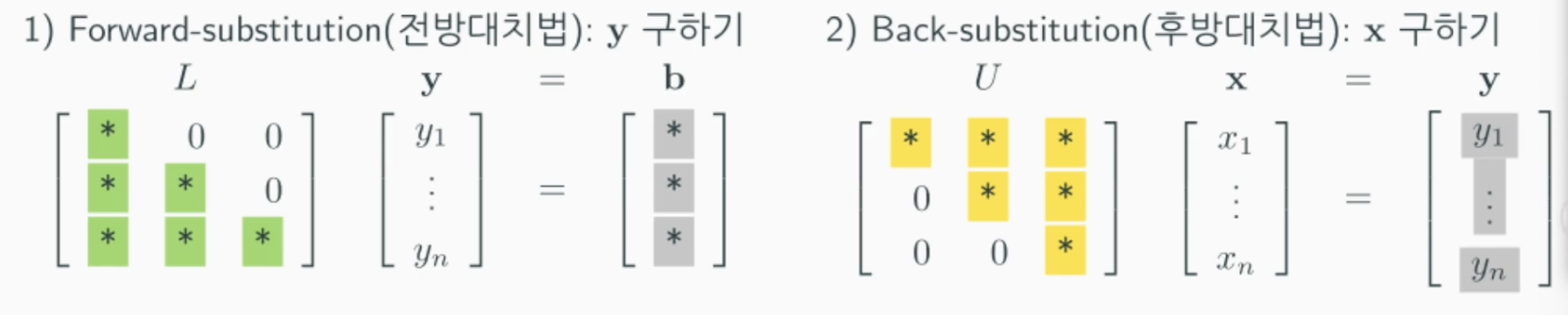$\rightarrow Ly = b$, (단, $Ux = y$)