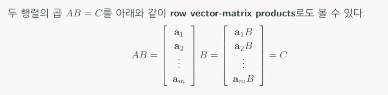 이들을 각각 행벡터(row vector), 열벡터(column vector)라 합니다.