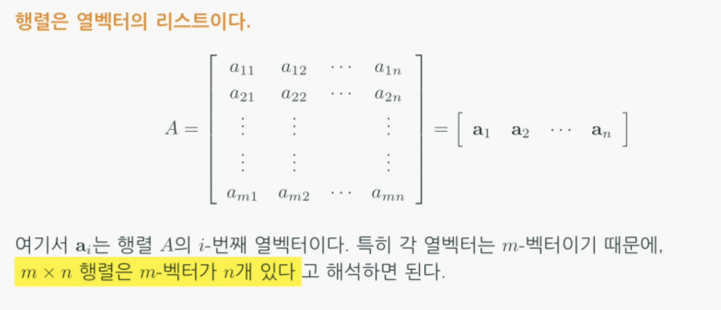 행렬이 열벡터의 리스트라고 생각해보는 것입니다.