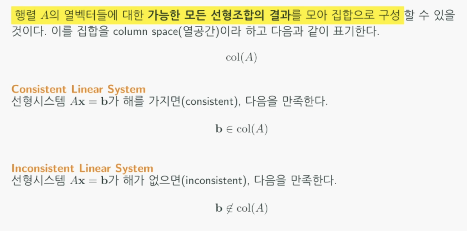 좌항이 하는 이야기는 아무리 복잡해도 A의 열벡터를