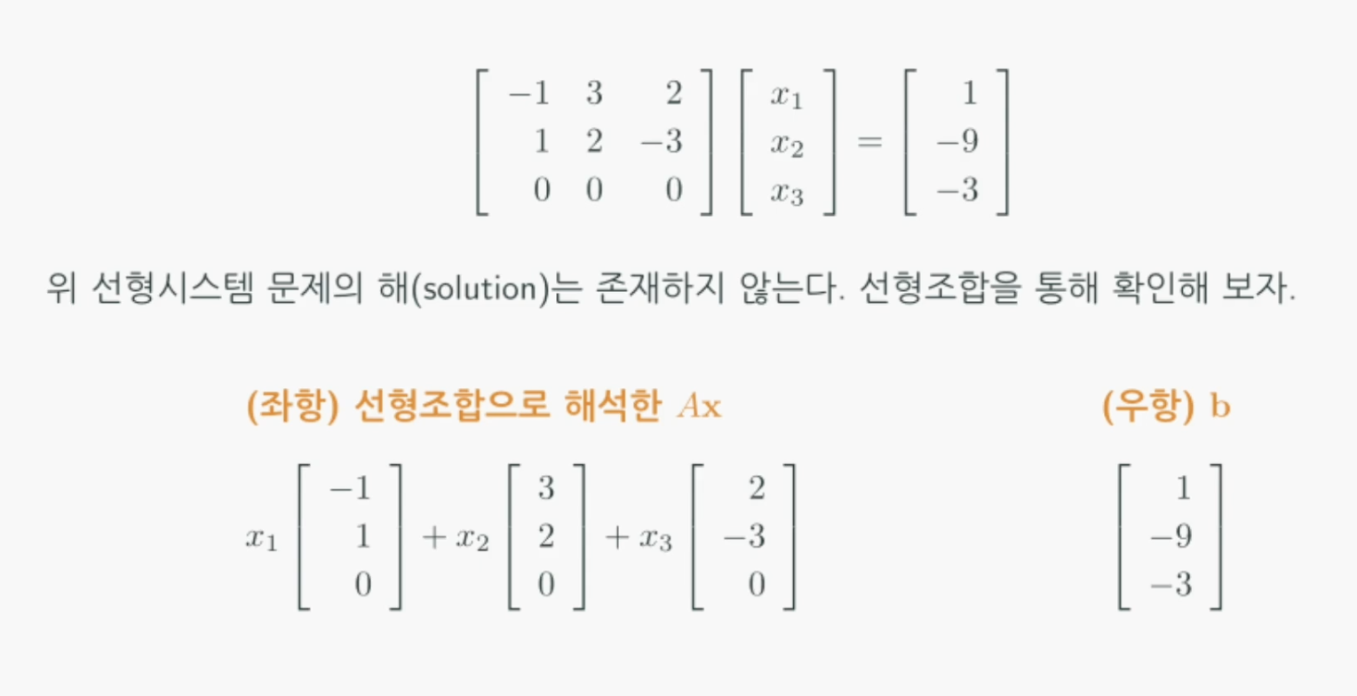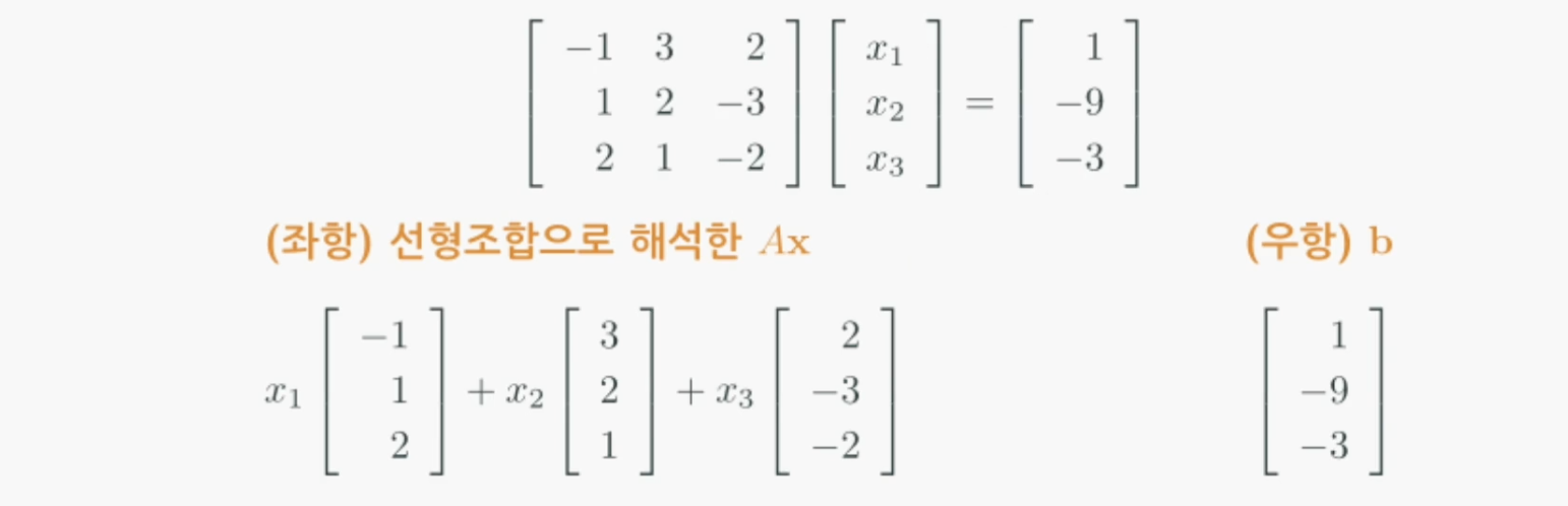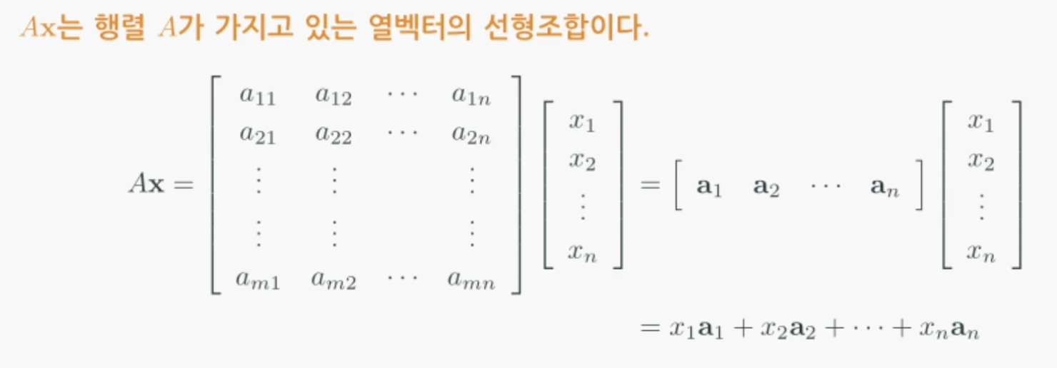 Ax는 A의 열벡터에 대한 선형조합