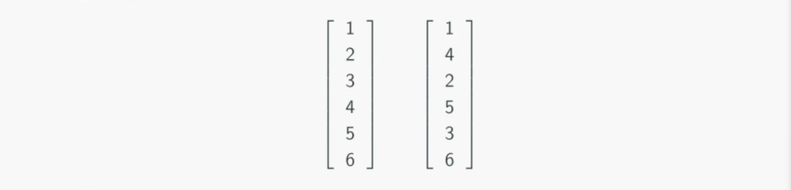 이 벡터를 행렬로 표현 하면 다음과 같이 여러 모양의 행렬로 표현할 수 있습니다.