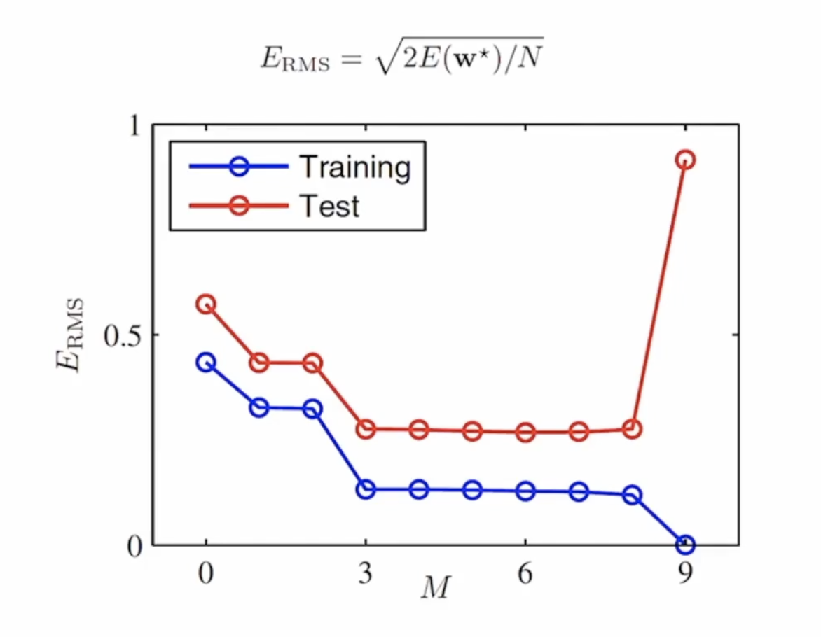\[y(x,w) = w_0 + w_1x + w_2x^2 + ... + w_Mx^M = \sum_{j=0}^{M} w_jx^j\]위와 같이 $x$에 대한 다차식을 $w$에 대한 선형식으로 나타낼 수 있습니다.