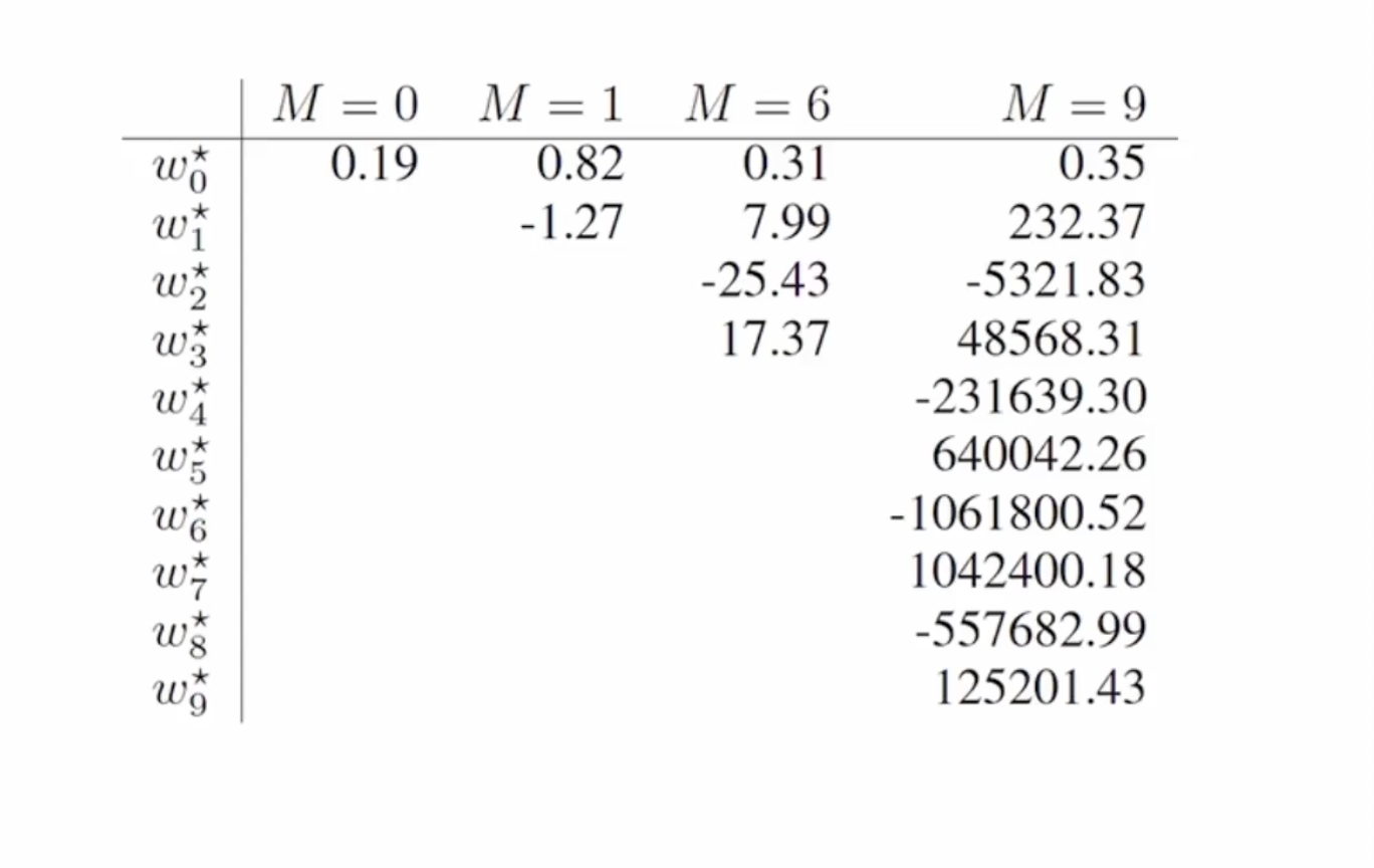 M이 커질 수록 모델을 맞추기 위해 계수를 커지도록 설정하는 것을 볼 수 있습니다.