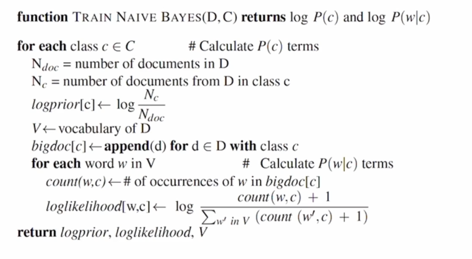 해당 클래스에 해당하는 문서들을 모두 모은 뒤에, 그 안에서 등장하는 특정 단어의 수를 (문서의 전체 단어의 수 + class에 해당하는 단어의)수 로 나누면 구할 수 있습니다.