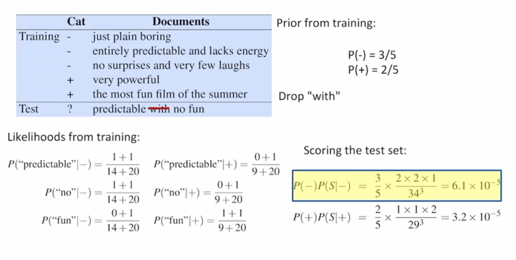 이를 클래스에 대해 최대화 하는 조건은 다음과 같습니다. \(argmax P(c \mid d)\)